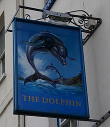 It is a no-frills unmodernised pub [3] famous for its cask ale, draught Bass served straight from the barrel.[9] It is listed in the Campaign for Real Ale (CAMRA)'s Good Beer Guide[10][11] and the 2008 Good Pub Guide. The sign on the front of the building has always called the pub the 'Dolphin Hotel'. In 2010 the pub was refurbished,[12] but vandalised in 2014.[13]