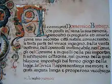 The journal expanded rapidly until it gave birth in 1902 to a nationwide magazine, L'Università italiana, published in Bologna and edited by Barduzzi himself and Raffaele Guerrieri.[8] Among his other achievements as chancellor of the University of Siena, he coined the university's current historical seal, which was approved by the Consulta Araldica on January 4, 1896.[9]