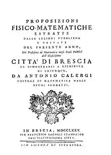 - Cocoli, Domenico (1775). Proposizioni fisico-matematiche (in Italian). In Brescia: Francesco Ragnoli.