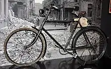 In the same IWM interview tapes Bruce describes a prank he played on some German soldiers who were guarding a working party of British soldiers. During the aftermath of the 'Tea Chest' escape, Bruce was travelling through Germany on a stolen bicycle and, coming across the file of soldiers being marched down a street, decided to cheer them up. He cycled up to the head of the column shouting out words of encouragement, saying they were not to worry because we were winning the war. On hearing the unmistakable tones of a British officer, the surprised soldiers started to cheer. Before the shocked guards could overcome their confusion and unsling their rifles to take aim at him, Bruce had accelerated around a corner and disappeared.[19][20]