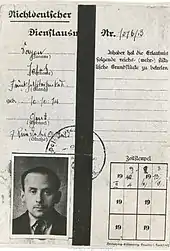 The first two times the worker party escape was tried it was held back at the gates due to faults in the documentation. In January 1942,[13] the third time they attempted the bogus worker party, they forged the signature of the guard Feldwebel Braun.[71] This opened the gate. Though this escape was immediately hindered by the guardsman noticing Feldwebel Braun could not have signed the papers as he was on compassionate leave.[71] The guards then started firing, and the bogus workers party dispersed.[71] According to Tunstall, not one of the escape party was caught and the German uniforms, the dummy rifles and forged papers where quickly stowed away in the hides at emergency speed.[72] The German search party did however find a piece of green cloth which was used to make the German uniform, on the camp's belongings. Bruce and Tunstall were blamed for this by Major Rademacher.[73] For this action Bruce received more time in solitary confinement.[13]