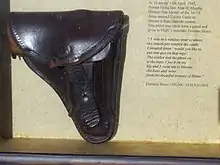The next morning the castle was visited by General Wolff, officer in charge of POW army district 4.[18] He inspected the camp and found everything to his satisfaction.[18] Fortunately for the camp commandant, as Wolff was driven away, his back was turned to the southern face of the castle. If he had turned his head he would have seen a length of blue and white checked (bedsack) rope dangling from a remote window.[18] It was, however, eventually noticed by a hausfrau (housewife) in the town, who quickly reported it to the duty officer.[18][93] The guard Georg Martin Schädlich documented how they were suddenly alerted to a rope at 11:30am from one of the attic windows.[94] When the German guards entered the storeroom they found the empty box on which Bruce had, in yet another of his pranks, inscribed in chalk: