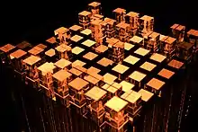 Chess Block2013An illuminated colour changing chess board primarily fabricated from optical glassGlass, LED, electronics, stainless steel.