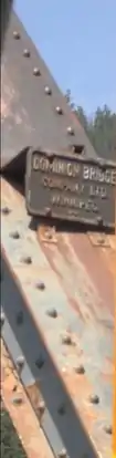 A plaque on Moberly Bridge over the Athabasca River near Jasper, Alberta, which the Dominion Bridge Company constructed