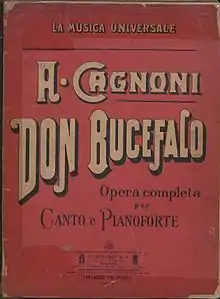 Don Bucefalo is an opera (dramma giocoso) in three acts composed by Antonio Cagnoni to a libretto by Calisto Bassi. Bassi's libretto was based on the libretto by Giuseppe Palomba (fl. 1765–1825) to Le cantatrici villane (1799) by Valentino Fioravanti. Don Bucefalo premiered on 28 June 1847 at the Milan Conservatory.