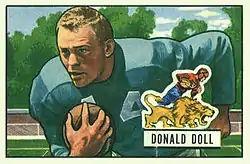During the 1951 and 1952 seasons, Doll was selected to appear in his second and third Pro Bowls and received the George S. Halas Trophy as the Most Valuable Player in the 1952 season Pro Bowl.[26] Doll played safety on the 1952 Detroit Lions team that won the NFL championship.[27] Though the 1952 Lions team is remembered mostly for the offensive output of Bobby Layne, the defense included Doll and Les Bingaman and led the NFL in both scoring defense and rush defense.[28]