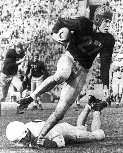 In July 1944, he joined the Trojans as a 17-year-old freshman halfback.[3] He played the 1944 season under his birth name, Don Burnside. In the 1944 season opener against UCLA, Doll had an immediate impact. He played halfback on both offense and defense (the norm in 1944), intercepting a Bob Waterfield pass and returning it 16 yards to the UCLA 22-yard line. On the next play, the Trojans again gave the ball to Doll who ran 20 yards to the 2-yard line. Two plays later, Doll scored on a 1-yard run to give USC a 13-0 lead at halftime.[4]
