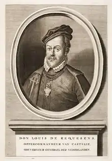 Luis de Requesens y Zúñiga (25 August 1528 – 5 March 1576) was a Spanish general, sailor, diplomat and politician. He served as governor of the Duchy of Milan (1572–1573) and as governor of the Spanish Netherlands (1573–1576).