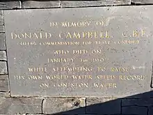 - ↑ "Malcolm and Donald Campbell memorial unveiled". The Telegraph. London. 29 November 2010. Archived from the original on 29 January 2011. Retrieved 20 January 2011.