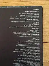 - ↑ At Fillmore East (Album notes). the Allman Brothers Band. New York City: Capricorn Records. 1971. Inside cover. SD2-802.