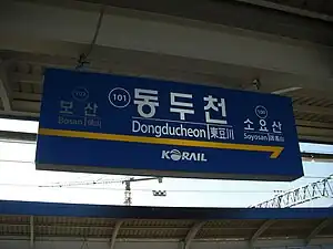 - ↑ "동두천역" (in Korean). KRIC. Retrieved 2015-09-09.