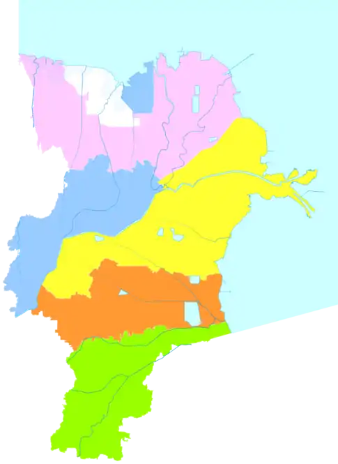 The prefecture-level city of Dongying administers five county-level divisions, including three districts and two counties: