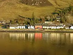 The A87, the main road to Skye, passes just outside the village. Before the construction of the bridge, the main road passed through the centre of the village and crossed Loch Long via a short ferry ride. Amongst bagpipers, the tune "Dornie Ferry" is a well-known strathspey.