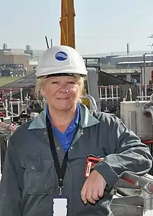 In 2017 she was named in Queen's Birthday Honours list[1] for "services to the nuclear industry". At the time she was Head of Programme Delivery, Legacy Ponds, Sellafield Limited. The following year she was able to announce that the first of the 1,200 skips of waste had been removed from the pond. They were being placed in larger containers and stored out of the pool but still on site. Removal of the skips makes it possible to deal with the remaining radioactive sludge.[6]