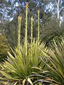 Doryanthes is the sole genus in the flowering plant family Doryanthaceae. The genus consists of two species, D. excelsa (gymea lily) and D. palmeri (giant spear lily), both endemic natives of the coast of Eastern Australia.[3] Doryanthaceae is part of the order Asparagales (the asparagoid lilies).