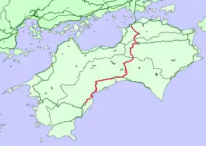Dosan Line (土讃線, Dosan-sen) is a railway line in Shikoku, Japan, operated by the Shikoku Railway Company (JR Shikoku). It connects Tadotsu Station in Tadotsu, Kagawa, and Kubokawa Station in Shimanto, Kōchi. The line links the city of Kōchi with northern Shikoku and the island of Honshū via the Seto-Ōhashi Line. The first section of the line between Tadotsu and Kotohira opened in 1889, Kochi was connected to the northern section of the line in 1935, and the western extension of the line was completed in 1951. The name of the line comes from "Tosa" (土佐) and "Sanuki" (讃岐), the old provincial names of present-day Kōchi Prefecture and Kagawa Prefecture, respectively.