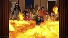 Double Fine performed internal playtesting, leaving the game running in a conference room to allow anyone passing to try it, and brought in friends and families with young children to try it out.[6] Microsoft Game Studios also assisted with playtesting, providing Double Fine with live feeds of weekly testing sessions with children and their parents playing with the game.[7] Testing with children was found to be important, as the children would identify new ways of playing with the modes that the team would later incorporate.[5] In the lava mode, Schafer and his team originally envisioned that children would play "avoid the lava", standing and stepping between furniture to avoid stepping in it. Instead, when they tested the mode with children, the children played in the virtual lava, leading the team to add additional responses to these actions for the game.[5] Some of the Achievements for the game resulted from watching these new interactions by children.[7] The development team found that capturing the virtual physical interactions that would occur with the activity was more important than setting up predetermined behavior, as it would lead to more natural actions and enjoyment from players; for example, as long as they provided the appropriate physical nature of a ball pit, players "instinctively know the "right" thing to do. "Jump into it!" according to Skillman.[8] Despite the aim for children, the Double Fine team found the game to appeal to "three-year-olds or college dorm rooms full of drunken 20-year-olds".[10]