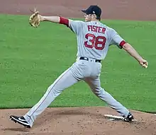 On June 23, 2017, Fister was claimed off waivers by the Boston Red Sox.[43] On June 25, Fister made his first start with the Red Sox, going 6 innings and striking out 6 batters, allowing 3 earned runs and in a 2–4 loss against the Los Angeles Angels. On an August 22 start in Cleveland, Fister allowed a lead off home run to Francisco Lindor to briefly tie the score at 1–1, but this would turn out to be the only hit registered by the Indians as Fister would go on to pitch a complete-game 1-hitter and not allow a hit to the final 28 batters faced in the game in an eventual 9–1 Red Sox win.