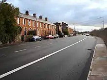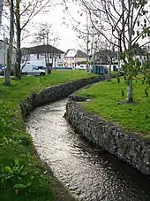 Further textile mills opened in the nineteenth century, including an additional Besnard-owned scutching mill (Ravensdale, 1806),[17][18] Lane's Corn and Hemp Mills (now Douglas Community Park, 1845),[15][19] O’Brien's Brothers (St Patrick's Woollen Mills, 1882),[15][20] Donnybrook Mills (Wallis & Pollock Flax Mills, 1866; re-opened as Morroghs' Woolen Mills, 1889/1890)[15][21] and Conroy's Rope and Twine Mills (now Galway's Lane, 1892).[19][15] Most of the mills ceased to operate in the early twentieth century, although St Patrick's Woollen Mills and Donnybrook Mills continued to operate until the 1970s.[15][16] Some of the houses built for the mill workers are still in existence, including a terrace of houses near the junction of the Grange Road and Donnybrook Hill.[22]