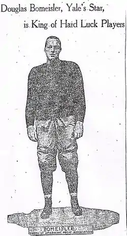 - 1 2 "Douglass Bomeisler, Yale's Star, King of Hard Luck Players". Hamilton Evening Journal. 1912-11-20.