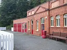 The smaller building that now houses the public and passenger toilet facilities and storage areas was once also used as the railway's own stabling facilities and incorporated porters' accommodation. In more recent times the stables have become garages which are leased out, there being three in total. The fourth old stable has been converted into accommodation and was once used by the night watchman and as storage space. The old porters' rooms were converted into the railway's souvenir shop in 1993 as part of the Year Of Railways and remained as such until the 1999 season when the premises closed and the space was let to the tenants of the station restaurant for storage purposes. When open the shop stocked a range of railway and transport-related publications, videos and magazines as well as a large range of postcards and souvenirs, which are now located at the Isle of Man Railway Museum in Port Erin. What now forms the ladies and gentlemen's' toilets next door was once entirely devoted to the gentlemans' facilities whilst the ladies waiting room was within the administrative structure. This setup was amended when rationalisation of the whole site was carried out in 1979 resulting in the facilities provided today. The toilets are also utilised by customers of the station restaurant and when closed are gated across. At the entrance to the platform there is a shall wooden chalet structure which is used by station staff when checking tickets, it also houses various signage and cleaning equipment. This structure was installed in 1991 replacing an earlier version which was time-expired; this structure was originally in a varnished finish but as part of minor refurbishments in 2009 was painted into the standard maroon and cream livery.