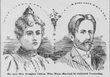 In 1901, Tilden was declared "violently insane" after an incident at his father-in-law's house where he without warning "began destroying the furniture in the room" in which his family was gathered.[10] The incident had been exaggerated by a household servant. Tilden had returned home early and, forgetting his key, had entered the house through an open window. The servant, who had been recently hired and believed this to be uncharacteristic of his employer, locked Tilden in his room, and Tilden attempted to alert others that he was trapped by hammering on the door. The frightened servant then called for the police, who took Tilden away to a mental hospital.[11]