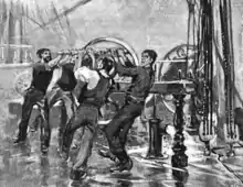 Downton pump operated by sailors