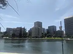 Downtown Oakland is the central business district of Oakland, California, United States. It is located roughly bounded by both the Oakland Estuary and Interstate 880 on the southwest, Interstate 980 on the northwest, Grand Avenue on the northeast, and Lake Merritt on the east.