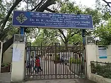 Dr. B. R. Ambedkar University Delhi, formerly Bharat Ratna Dr. B. R. Ambedkar University Delhi and Ambedkar University Delhi, and simply AUD, is a state university established by the Government of the NCT of Delhi through an Act of the Delhi Legislature.[4] The university began functioning in August 2008. It is a Unitary non-affiliating University whose main focus is on undergraduate and postgraduate studies and on research in the Humanities and the Social Sciences. It is completely funded by the State Government of the NCT of Delhi.[5] The university is now declared eligible to receive Central Government Assistance.[6] The university has been graded 'A' by National Assessment and Accreditation Council.[7] It is named after the polymath B. R. Ambedkar, the architect of the Indian Constitution and one of the founding fathers of India.