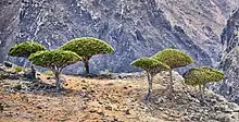 Dracaena cinnabari, the Socotra dragon tree or dragon blood tree, is a dragon tree native to the Socotra archipelago, part of Yemen, located in the Arabian Sea. It is named after the blood-like color of the red sap that the trees produce.[2] It is considered the national tree of Yemen.[3]