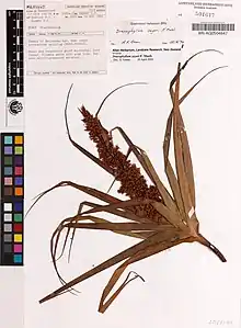 Dracophyllum sayeri is a non-herbaceous plant in the genus Dracophyllum, endemic to North Queensland.[1] The plant has green leaves approximately 20-50 centimetres in length when mature. Inflorescence are approximately 15-25 centimetres in length and range from a light red colour to cream.[2]