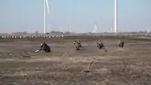 In November 2022, the Russians were seen by Ukrainian journalists to have fortified the region around Melitopol with dragon's teeth lines.[10][11] The dragon's teeth were only a component of the echeloned Russian defenses in southern Kherson: minefields, anti-tank ditches, dugouts, and trenches added to the complex.[12][13] A number of Belarusian firms supplied Russian troops with dragon's teeth.[14] Dragon's teeth were also set up in the area of Mariupol, Nikolske and Staryi Krym around the same time.[15]