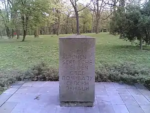 The desperate charge that followed, in which Gavrilović was badly wounded, failed to destroy the Austro-Hungarian bridgehead. The timely intervention of Austro-Hungarian river monitors which approached the shore to deliver point-blank artillery fire with much-reduced fear of hitting their own troops, and to which the engaged Serbian units had no effective counter, played a major role in defeating the attack. But the charge and similar acts of bravery and self-sacrifice by Serbian troops and by the inhabitants of Belgrade during the battle earned deep respect from the invaders, who suffered around 10,000 casualties in the course of capturing the city. The German commander August von Mackensen himself erected a monument on the battleground commemorating the city's zealous defenders; it still stands to this day and is inscribed with the words "Here Rest Serbian Heroes" in German and Serbian, a rare example in military history, of one army building a monument to their enemies.[3]