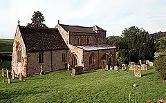 The Church of England parish church of Saint Peter was in existence by 1223.[2] Its earliest surviving features are a Norman priest's doorway and the font.[4] In the 14th century St Peter's was almost completely rebuilt[2] and north and south aisles were added, all in the Decorated Gothic style.[4] Lobel and Crossley contend that the clerestorey was added at the same time,[2] but it is in the Perpendicular Gothic style and Sherwood and Pevsner contend it was added later.[4] The low west tower was added in 1808[4] and has three 17th century bells: two cast in 1634 and two more cast in 1670.[2] In 1878 the Gothic Revival architect Edwin Dolby restored the church and added a vestry.[4] St Peter's is a Grade II* listed building.[5]