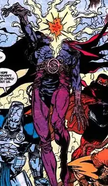 Dreamslayer is a fictional character, a powerful DC Comics supervillain and part of the evil gang called Extremists. Like the other Extremists, he is an homage to a Marvel Comics character, in this case Dormammu.[1] He first appeared in Justice League Europe #15 (June 1990), and was created by Keith Giffen, Gerard Jones and Bart Sears.[2]