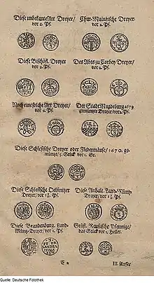 - Dreier of the city of Halberstadt, 1633 from the Cathedral Treasury and Cathedral of St. Stephen and St. Sixtus in Halberstadt, part of the Saxony-Anhalt Cultural Foundation, images and explanation via the portal museum-digital