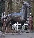 Surrounding the "Erlfeld" is a horse racing track, 850 meters in length. It is mainly used for the annual horse derby (see also events). Each August the local horse race association (Rennverein Drensteinfurt) has this race which is visited by some ten thousand people. In 1993 the association raised a monument for equestrian sports. The bronze statue displays a horse and is situated on the Mühlenstraße (millstreet).