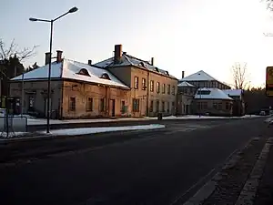 In the early decades since the opening of the Görlitz–Dresden railway by the Saxon-Silesian Railway Company (German: Sächsisch-Schlesische Eisenbahngesellschaft) in the first part of 1845, trains ran past Klotzsche. In 1873,[4] the Royal Saxon State Railways (which had taken over the company in 1851) was directed to build Klotzsche-Königswald station, so that the royal family's summer trips to the Dresden Heath (Dresdner Heide) could start by train to Klotzsche. The station was named after the locality that developed a little later into the villa estate of Königswald.
