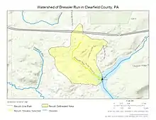 Watershed and Course of Dressler Run in Clearfield County, Pennsylvania, USA