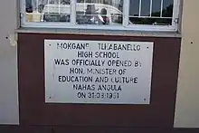 The town features two schools, Drimiopsis Primary School and Mokganedi Tlhabanello High School, serving 489 and 590 pupils respectively in 2008. In 2012, the high school had 453 students.[2]