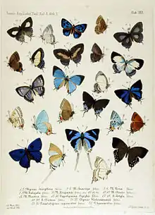 | Drina discophora and Drina donina in Cajetan Felder's Reise der Österreichischen Fregatte Novara um die Erde | |