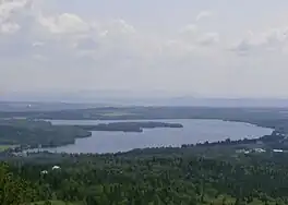 ![]() Lake Drolet seen from the site of the Maison Du Granit at an altitude of 680 meters on the eastern flank of Le Morne between Lac-Drolet and St-Sébastien. | |