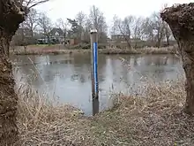 In the night of 8–9 September 1910 the Dommel opened the canal by flowing over the threshold below the railway bridge south of 's-Hertogenbosch station.[33] Whether the canal would serve its purpose could only be determined by the occurrence of a very high water level on the upper Meuse. In the winter of 1913-1914 such a high water level occurred. The province noted that the new mouth of the Meuse and the drainage canal discharged enormous amounts of water. The fact that many polders nevertheless continued to be flooded was blamed on the continued high water level to the west, that prevented part of the discharge. Meanwhile, the canal had also been useful for irrigation.[34] To the contrary one of the water boards complained that the canal did not discharge well enough.[35]
