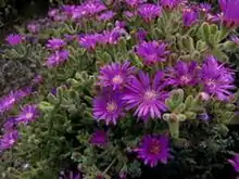 Drosanthemum floribundum, commonly known as rodondo creeper, pale dewplant, or dew-flower, is a succulent plant in the ice plant family, Aizoaceae. The species is native to the Eastern Cape in South Africa and is naturalised in Portugal and the states of South Australia, Western Australia, and Victoria in Australia,[1][2] as well as Pacific Grove, California[3] where it is called the Magic Carpet. It is a trailing perennial with hairy stems and leaves that are either cylindrical or triangular in cross section. These are between 3 and 15 mm in length and 1 to 2.5 mm in width. Flowers are up to 2.5 cm in diameter and are lavender, pink or occasionally white.[2]