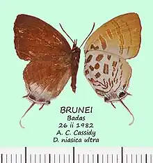 Drupadia niasica is a species of butterfly belonging to the lycaenid family described by Julius Röber in 1886. It is found in the Indomalayan realm.[2]