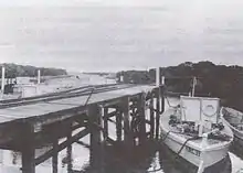 King tides regularly flooded the estuarine plain. Consequently, the tramline along the mangroves from the magazines to the jetty at Broad Creek was frequently damaged. In July 1917, the jetty was inundated by the highest tide on record, 11 feet 10 inches (3.6 metres) above low water, and was washed away. The following August an unusually high tide washed away the gear of the levee workmen, including planks, barrels, barricades and bags of silt, which disappeared without a trace.[4]