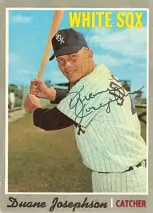 Duane Charles Josephson (June 3, 1942 – January 30, 1997) was an American catcher who played in Major League Baseball for the Chicago White Sox and Boston Red Sox in parts of eight seasons spanning 1965–1972. Listed at 6' 0", 190 lb., he batted and threw right-handed.