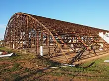 The three Bellman Hangars provide evidence of very early prefabrication techniques in use for buildings in Australia. The double hangar (building 70) and the two single hangars (buildings 2 and 3) were used as mixed- and bulk stores. The British design used a pitched roof and gabled steel frame to provide a standardised design for aircraft maintenance, with sliding doors at each end allowing maximum access. Internal lighting is by high level, clerestory windows.[8] During World War II steel was considered an essential material for armaments and, although steel was available for buildings, many Bellman Hangars were constructed with a framework of unseasoned Australian hardwood.[1][16]