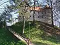 The Dubovac Castle overlooks the Croatian city Karlovac. Its square tower was probably built during the 13th century. In the 15th century, the castle was rebuilt in Renaissance style. The castle had various owners—from Slavonian nobleman family Sudar to famous Croatian counts and dukes Frankopan and Zrinski. From 1671 until 1809, the Dubovac was owned by the Karlovac generals. In 1837, a new owner, Count Laval Nugent, rebuilt the castle in the spirit of romanticism. Dubovac was once again renovated in 1952 in relation to graphics from the end of the 18th century." There is a photograph of the castle at that site.[1]