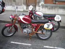 The 125 Bronco is a tubular steel/full-duplex-framed, base model motorcycle made by Ducati from 1960 to 1966, produced mainly for American distributor Berliner Motor Corporation.[2] It was the second to last example, before the Ducati 125 Cadet/4,[3] of Ducati pushrod technology which began in 1952 with the pressed-frame Ducati 98 models, which themselves had followed the Cucciolo T3, pull-rod (Ducati 60) and pushrod (60 Sport, 65 Sport, 65T Tourist) design singles.